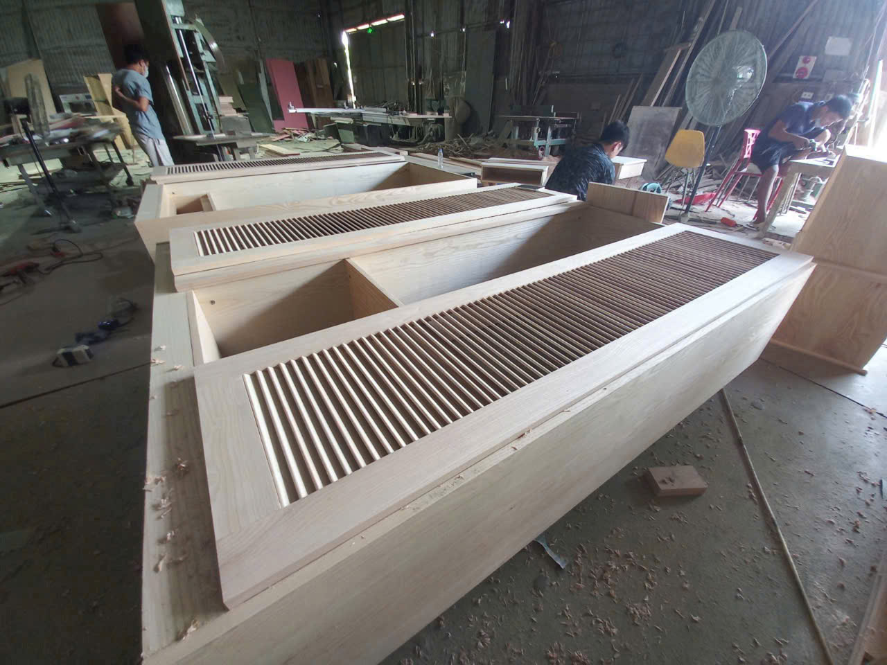Dựng sản phẩm theo bản vẽ chi tiết. Với những sản phẩm có sẵn lớp phủ bề mặt như Melamine, Laminate…kiến trúc sư kiểm tra lần cuối về độ chính xác so với bản vẽ và chỉnh sửa nếu cần thiết.